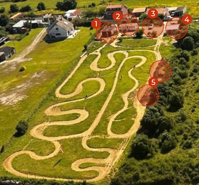 Vista aérea das instalações Dirt Ride Academy e respetivas zonas.
